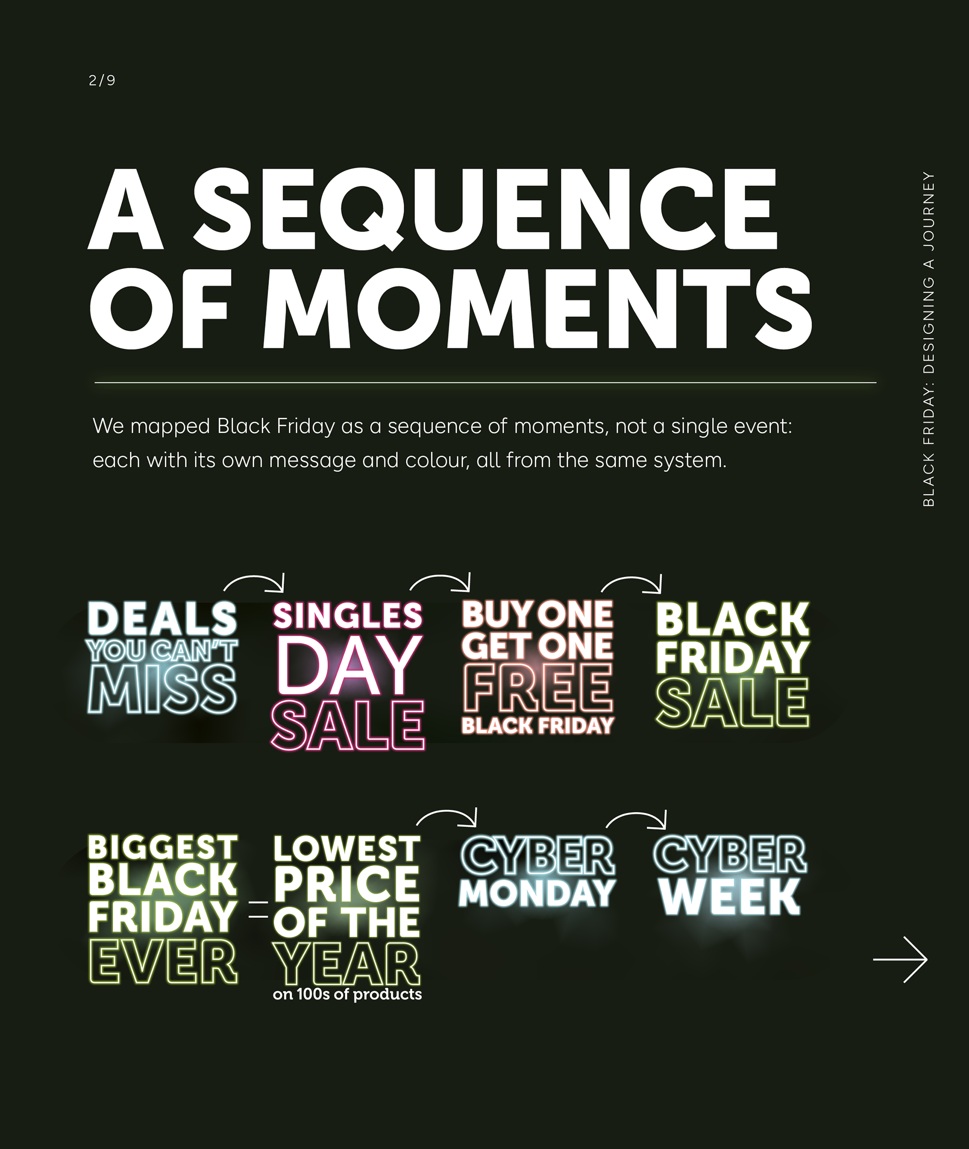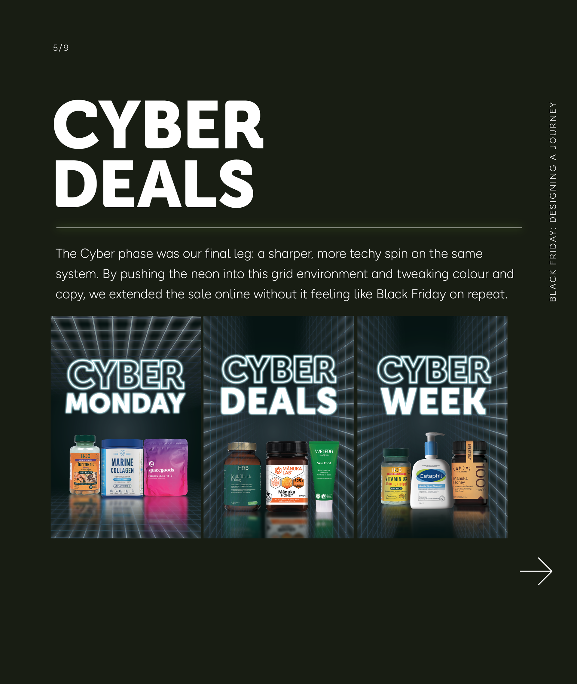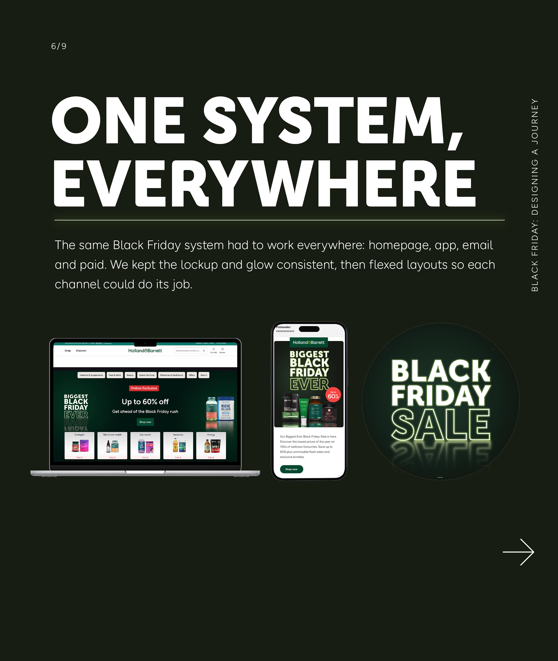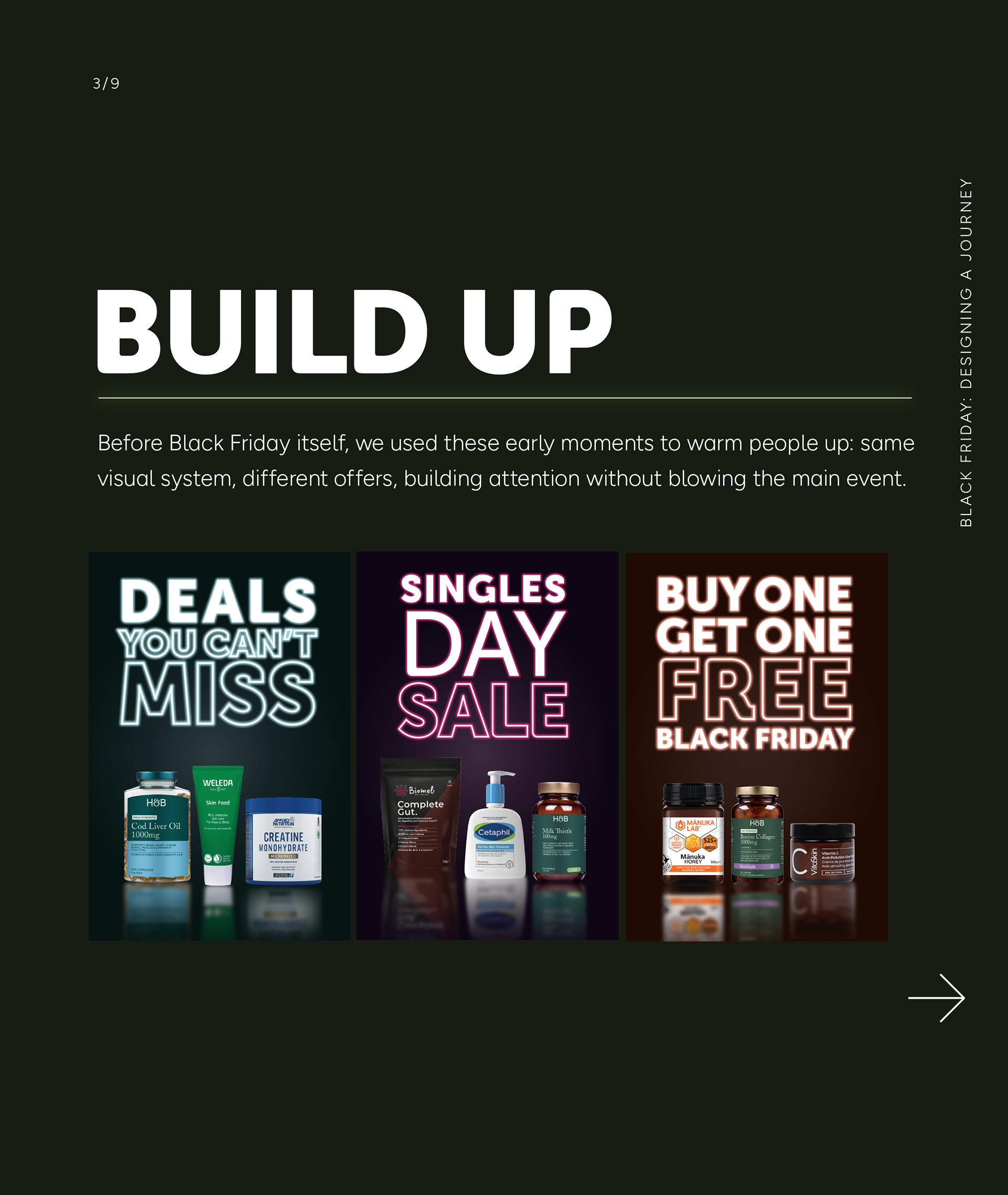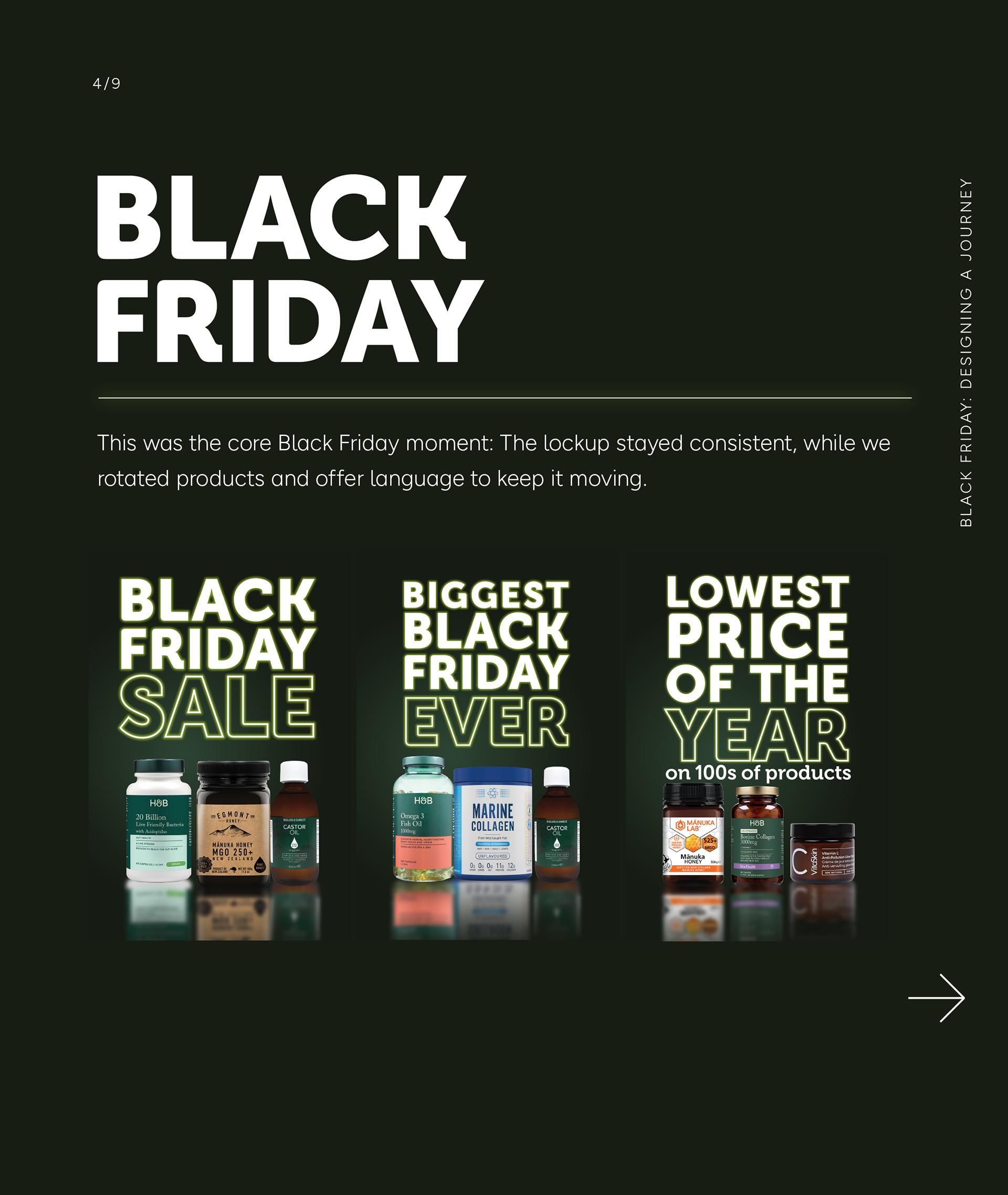 Black Friday creative often shifts tone through the week: from “event launch” to “category pushes” to “last chance”. The system was designed to absorb that shift without looking like three separate campaigns.